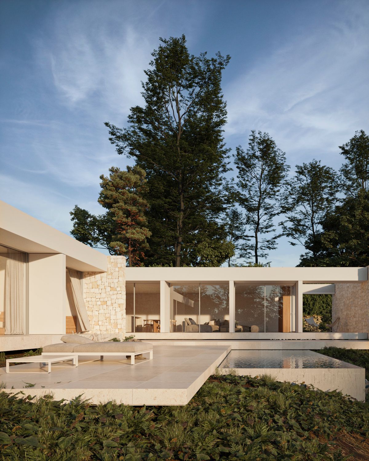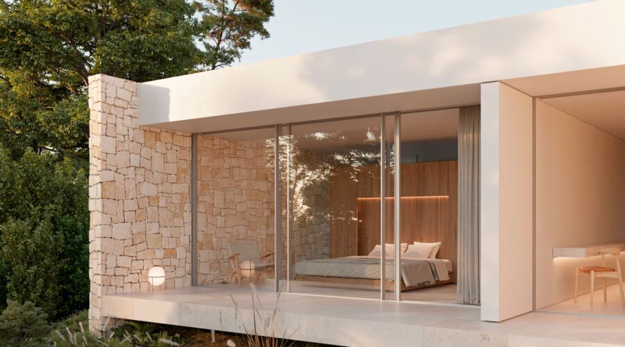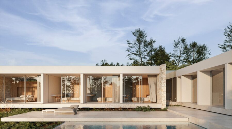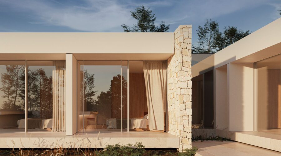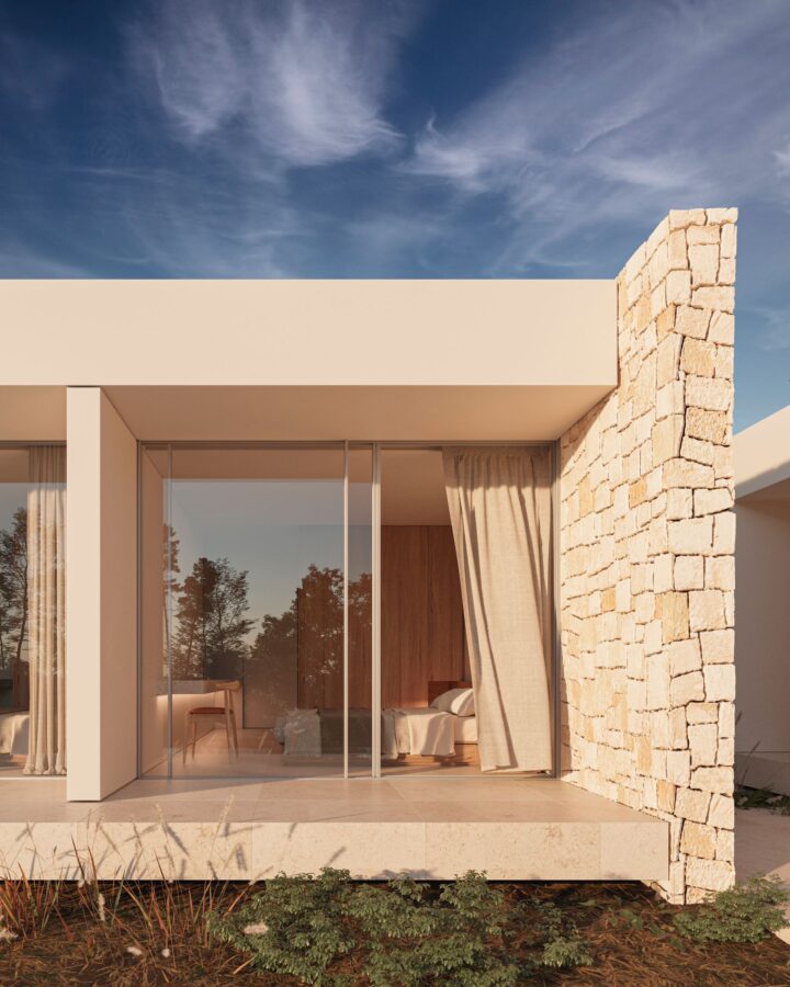 La propuesta de materialidad busca la reinterpretación del estilo mediterráneo tradicional, siempre desde el punto de vista del diseño contemporáneo, mimetizándose con el entorno y al mismo tiempo aportándole una visión vanguardista.
