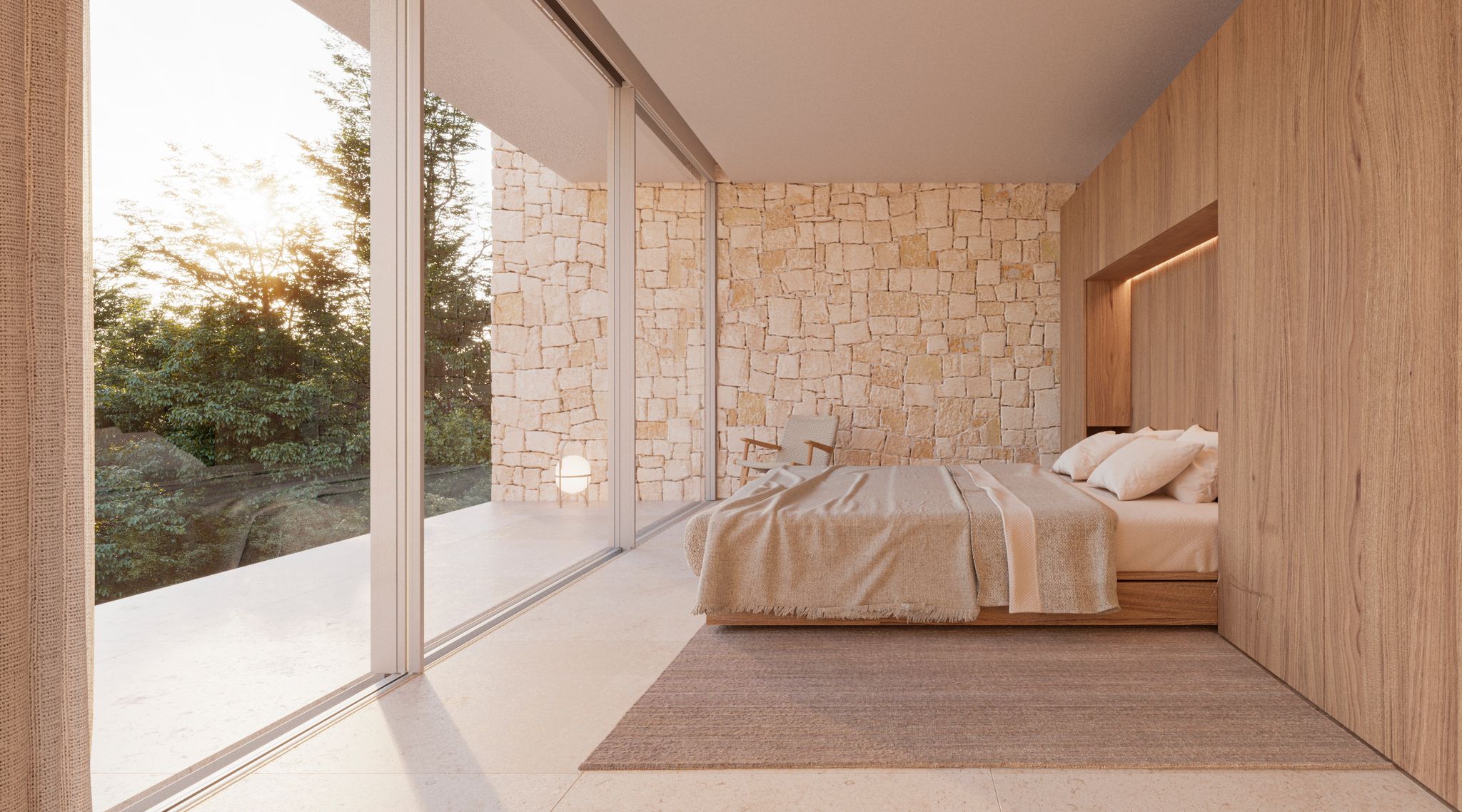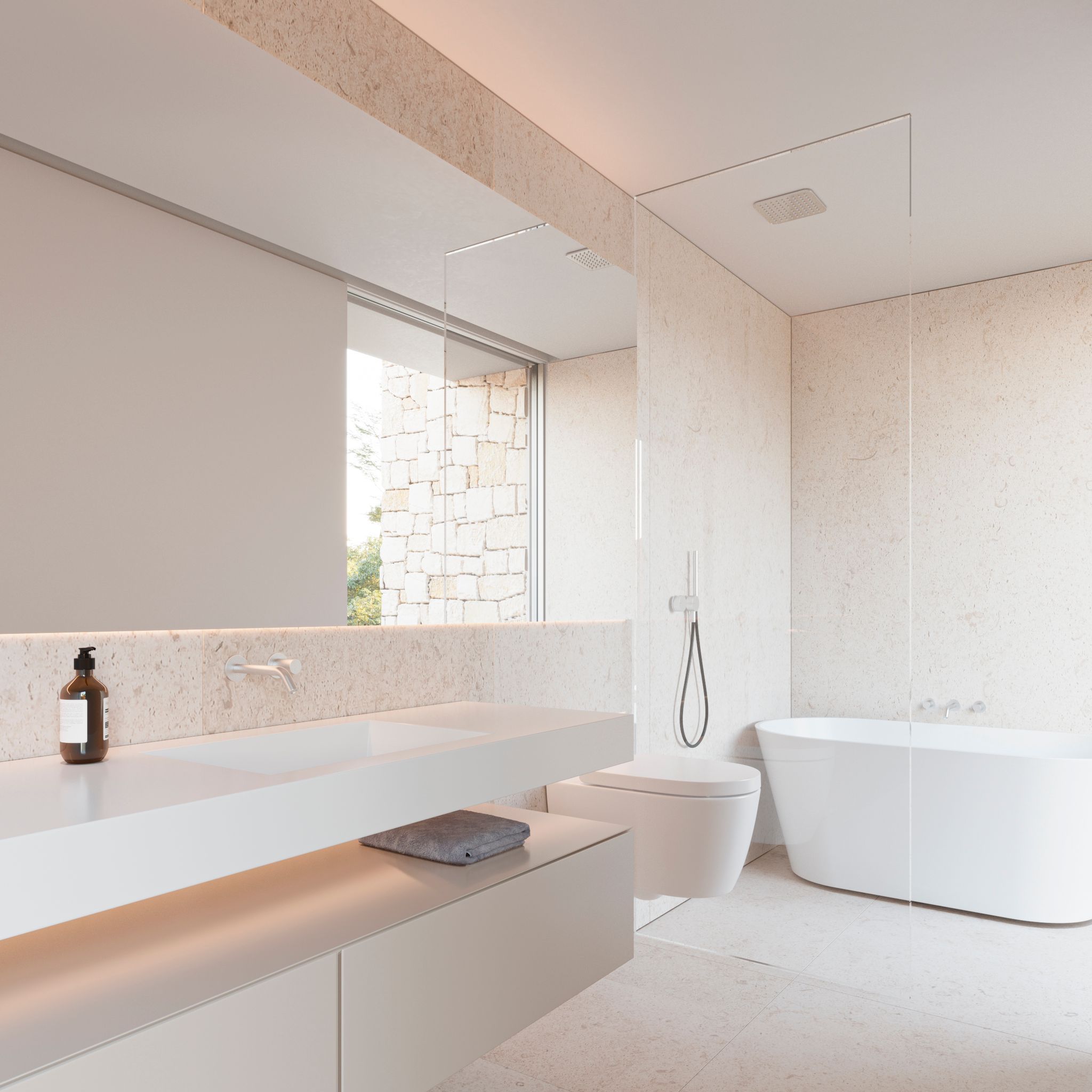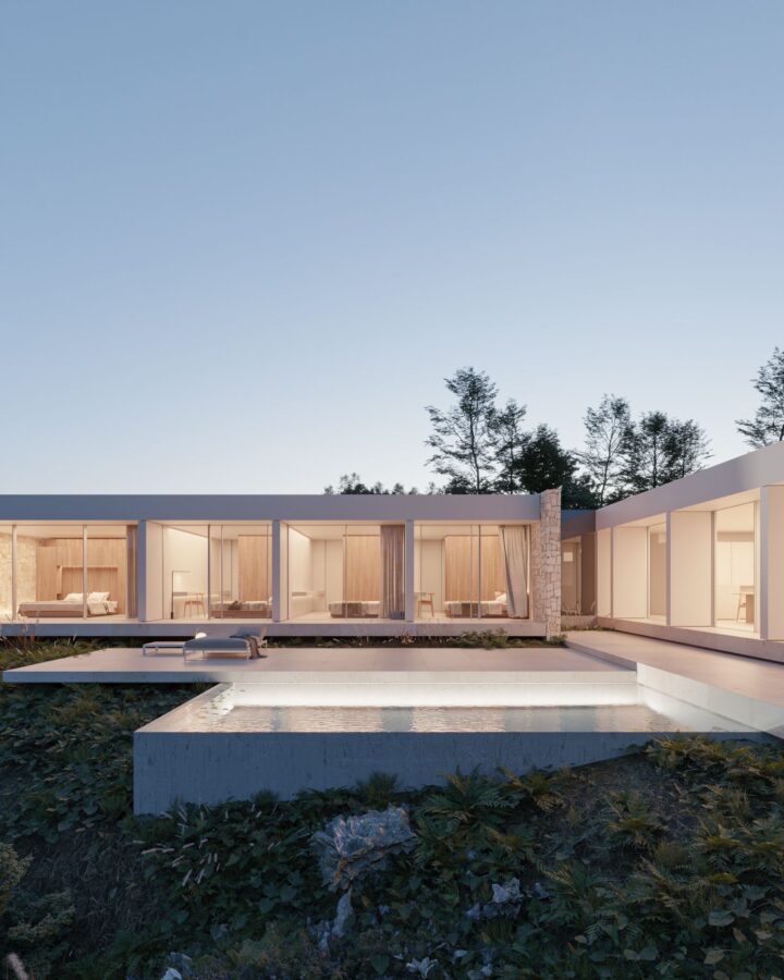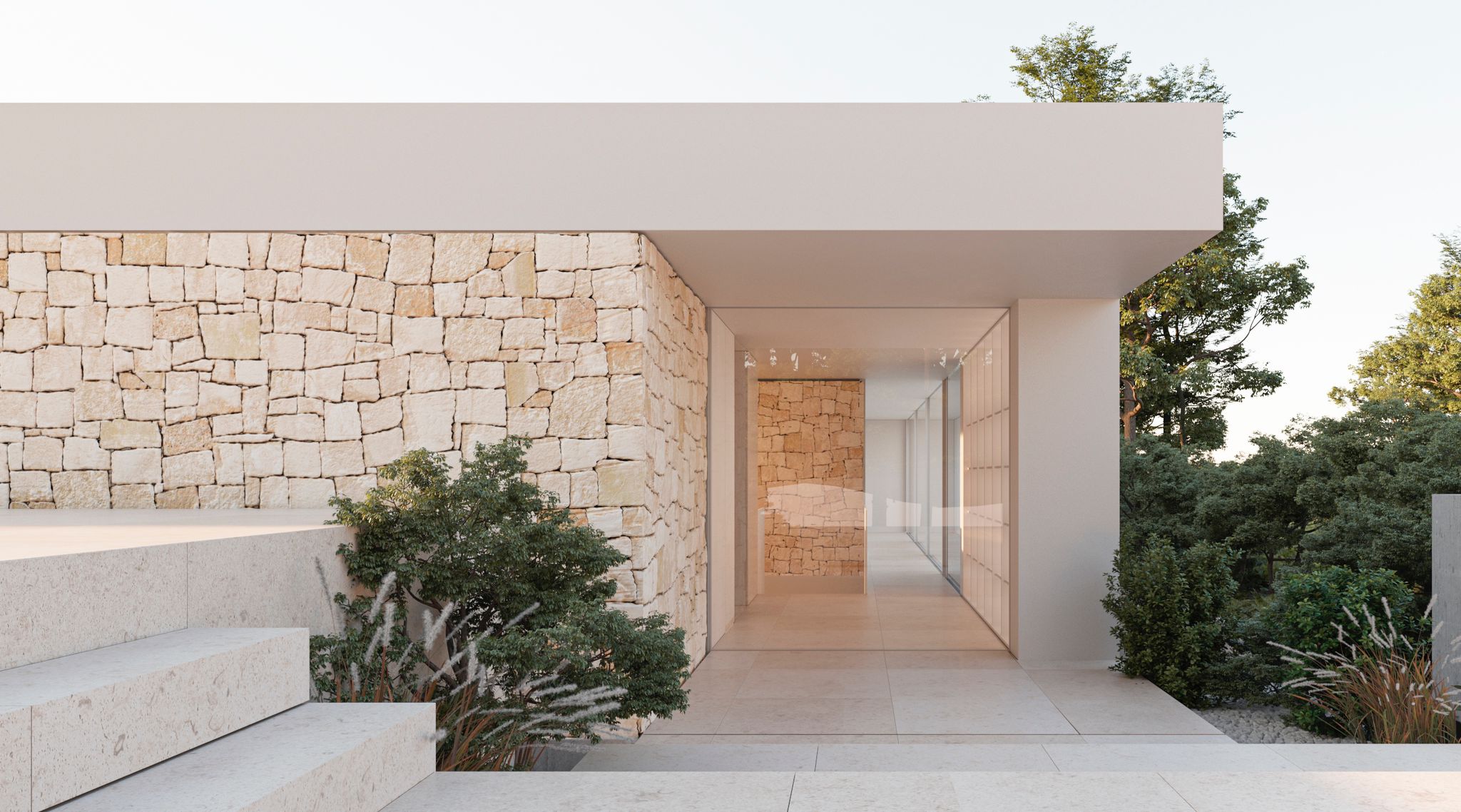 La propuesta de materialidad busca la reinterpretación del estilo mediterráneo tradicional, siempre desde el punto de vista del diseño contemporáneo, mimetizándose con el entorno y al mismo tiempo aportándole una visión vanguardista.