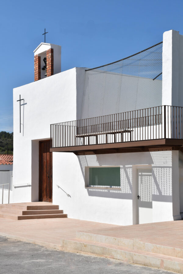El Trinquet forma parte de un conjunto edificado en el cual existe una pequeña iglesia, piscina y vestuarios. En coherencia, la actuación se ha realizado prácticamente en todo el conjunto, buscando una integración armónica de las diferentes partes tanto en el aspecto funcional como estético.