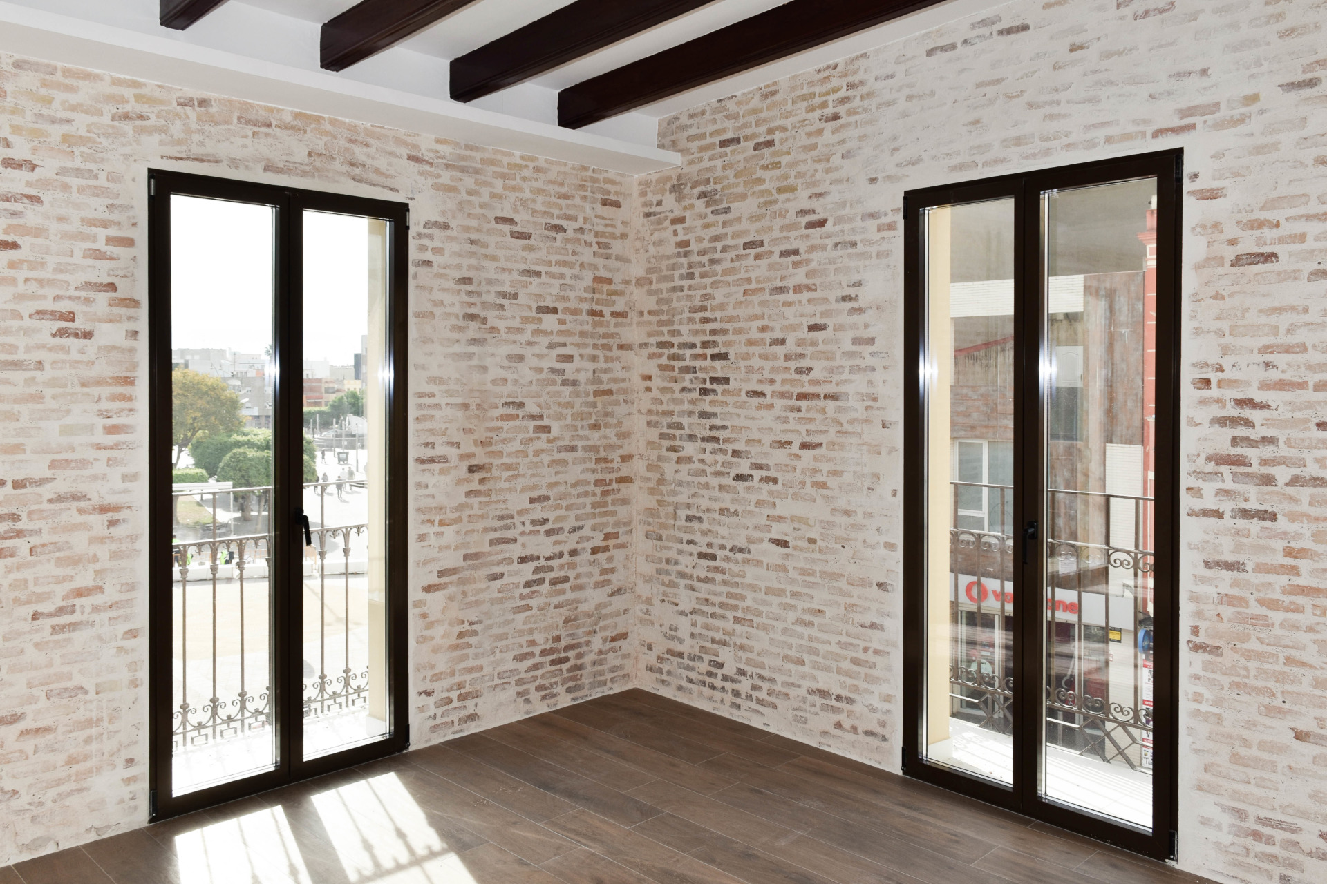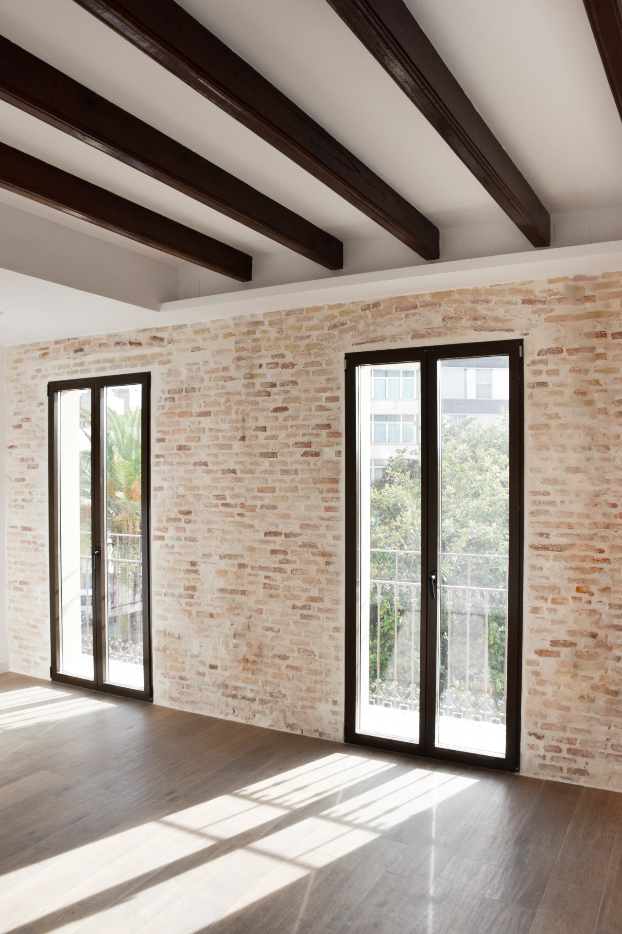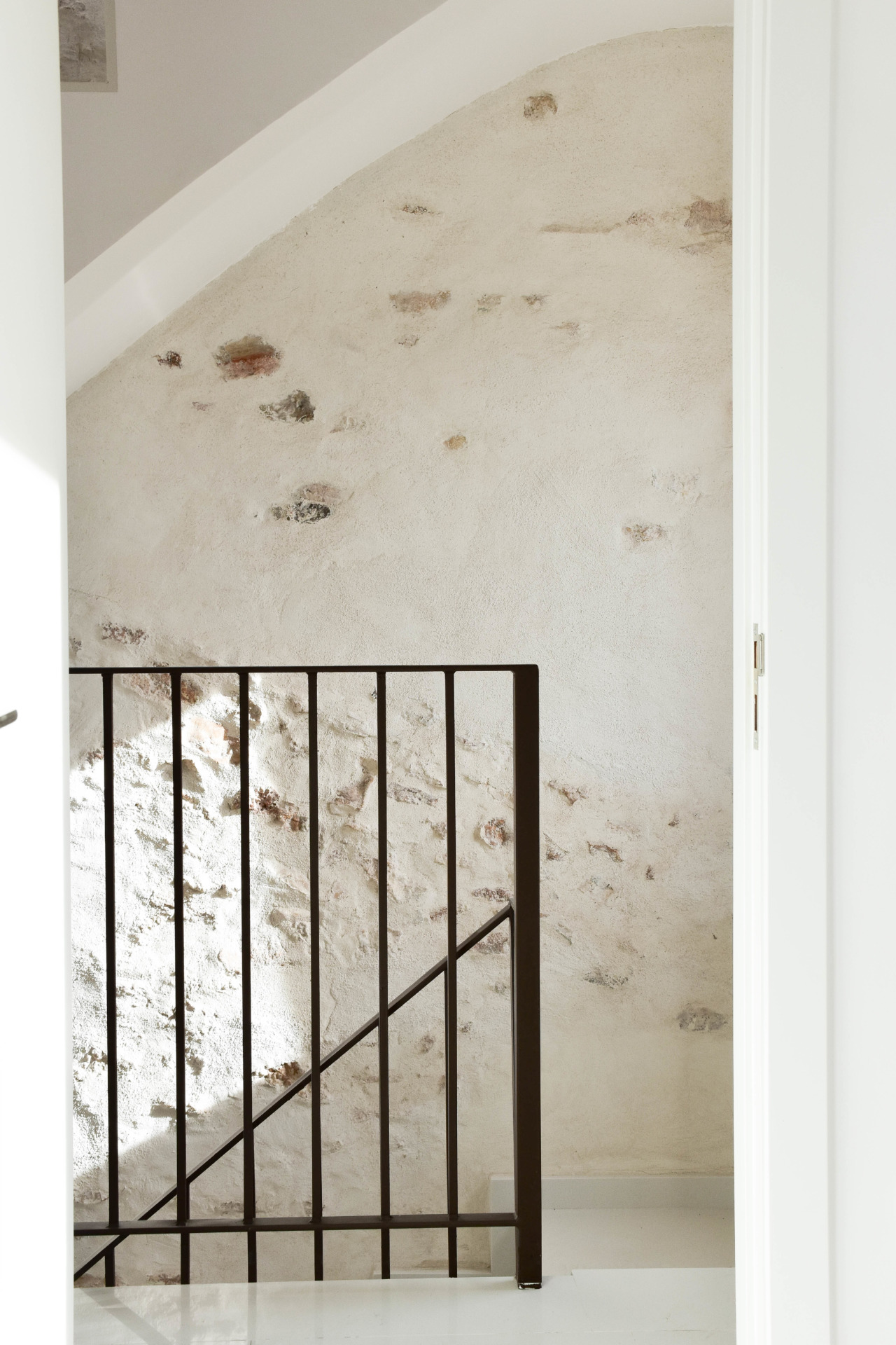 En su interior, la materialidad de la escalera proporciona la espacialidad necesaria para dar continuidad, mientras que, en los techos, las vigas actuales se restauran, resaltando el carácter estructural primitivo. De la misma manera, las paredes desvelan la construcción original, tanto la piedra en la zona de la escalera como el ladrillo en las estancias de la vivienda.