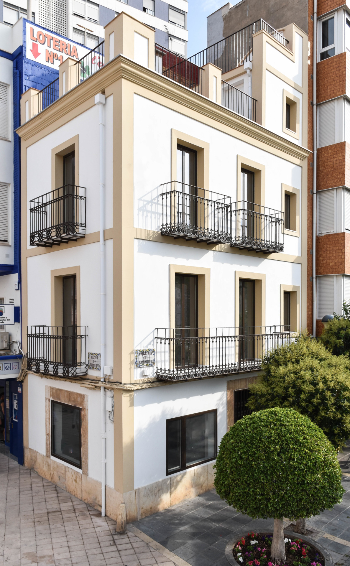 En planta baja se encuentra el local comercial, mientras que en las plantas superiores se sitúa la vivienda. El objetivo de este proyecto de rehabilitación se basa en la conservación de los elementos arquitectónicos más emblemáticos de la época, mejorando a su vez las condiciones de habitabilidad. La envolvente del edificio se preserva en su estado original, manteniendo dinteles y huecos preexistentes, solo interviniendo en el cambio carpinterías, de hoja oculta para proporcionar más luz en su interior, y restaurando las barandillas originarias.