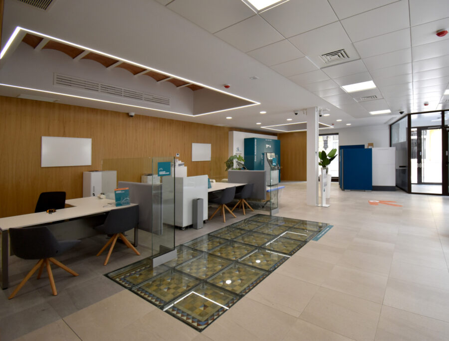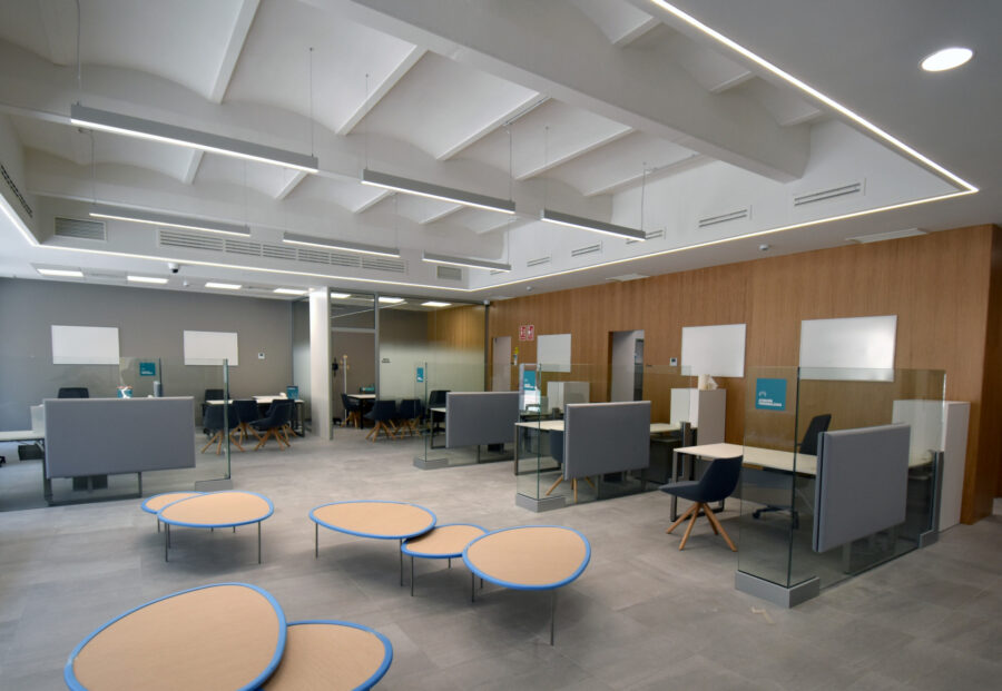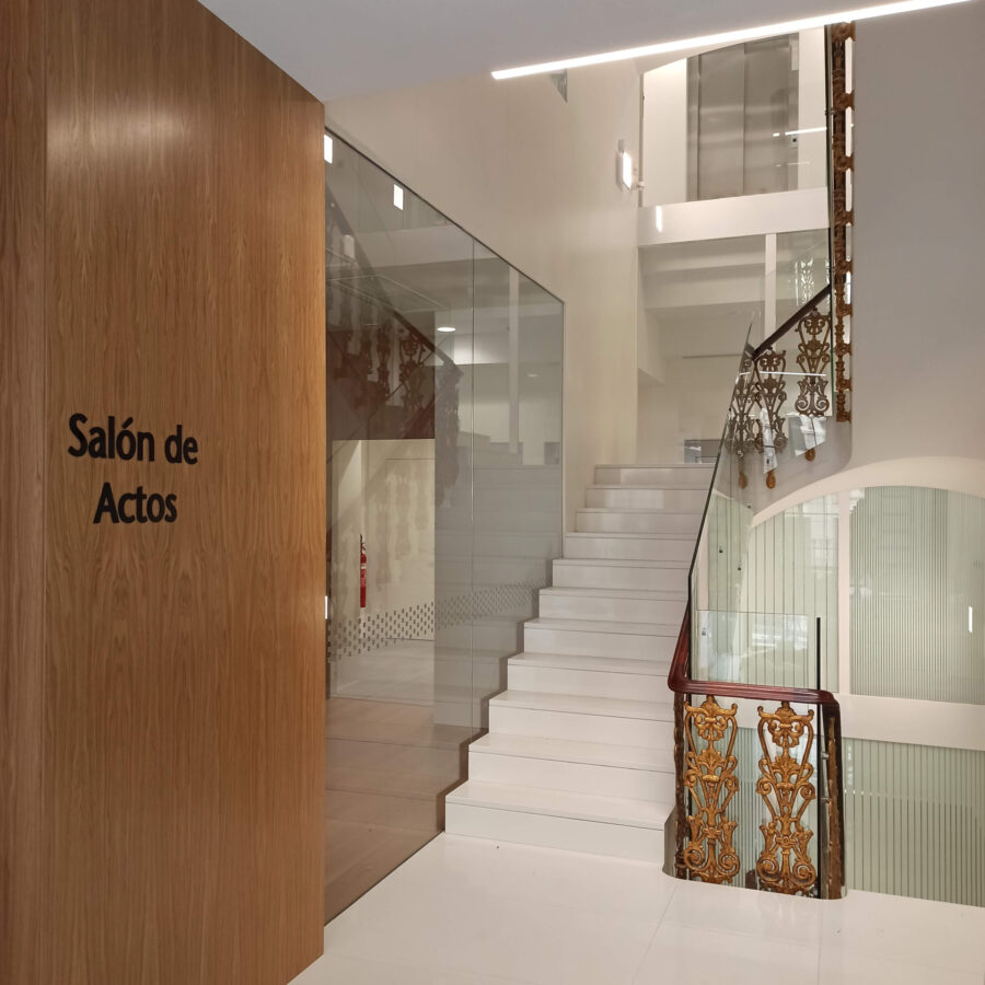 El proyecto de reforma del emblemático edificio catalogado, para la dirección territorial de Cajamar en Castellón, pretende reconvertirlo en un espacio adecuado a sus necesidades. Respetando los valores de la empresa y convertirlo en el buque insignia del banco en la provincia. Ello requiere actuar con especial sensibilidad con los elementos que definen la preexistencia. y poniendo en valor la envolvente que las contiene.